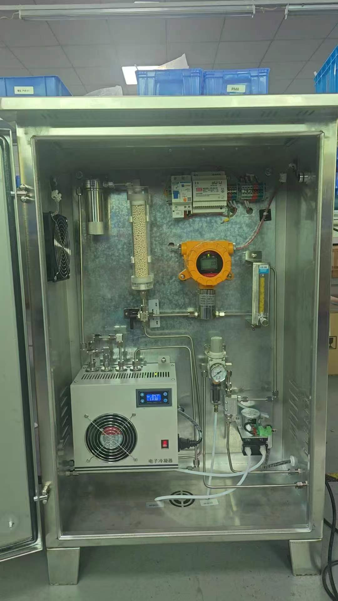 帶預處理耐高溫型檢測儀主要應用于特殊設備的氣體分析,主要原理是將現(xiàn)場的煙氣或高溫高濕度的被測氣體采樣過來進行降溫、除濕、粉塵過濾、過濾焦油處理,并將被測氣體的溫度和濕度恒定在一定范圍,使氣體分析儀能夠正常檢測濃度,整個過程為自動化處理,不需人為干預處理。帶氣體預處理的檢測系統(tǒng)用于被測氣體粉塵不多,高溫度和高濕度的場合,對于粉塵和焦油量較多的場合需多配焦油處理系統(tǒng)。